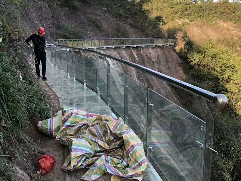 玻璃棧道施工中